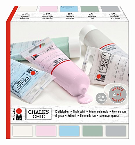 in MalfarbenMarabu Chalky Chic Set5x 100ml matte Kreidefarbe in edelweiß, puderrosa, lichtblau, mistel und steingrau, wasserbasiert, für Holz, Metall und Kunststoff, Used Look anschleifbar