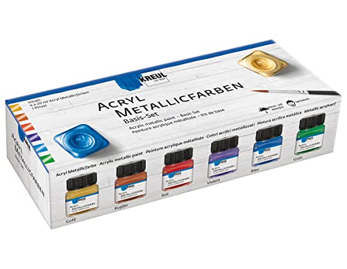 - Entdecken Sie die KREUL 77600 Acryl Metallicfarben im Set, das sechs Tuben mit jeweils 20 ml enthält, sowie einen Pinsel