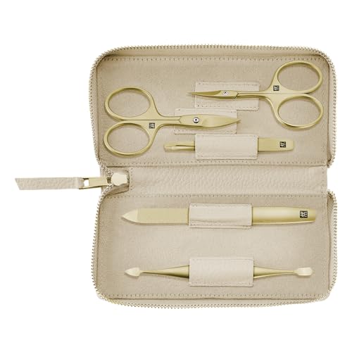 Zwilling Maniküreset Premium Gold Edition5-teilig mit Echtleder Etui, Reiseset, Nagelschere und Nagelhautschere