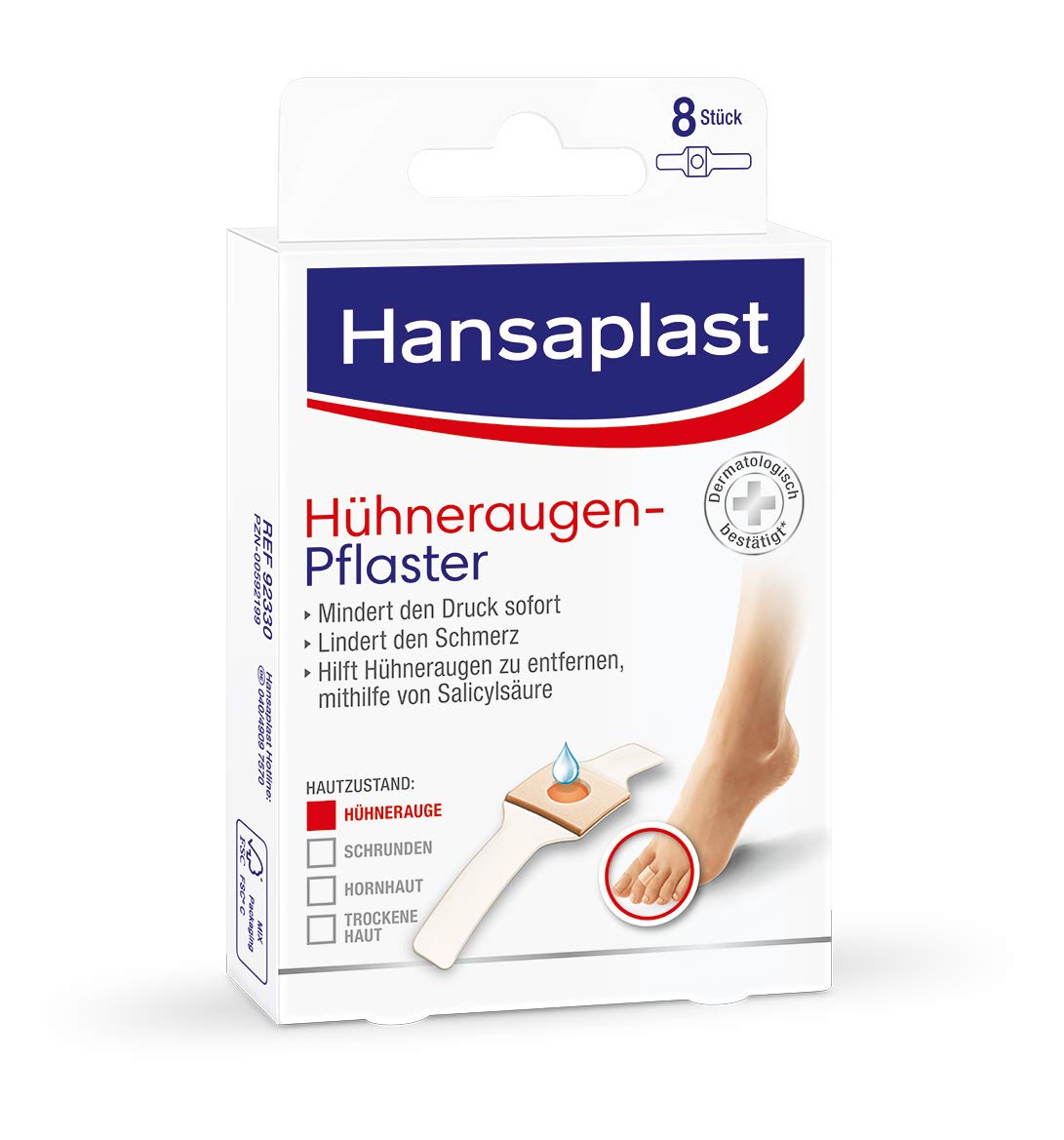 - Hansaplast Hühneraugen-Pflaster lindert den schmerzhaften Druckschmerz, der durch Hühneraugen verursacht wird.