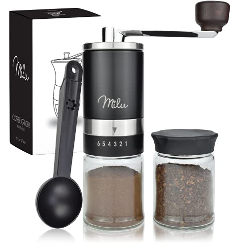 in Manuelle KaffeemühlenMilu Manuelle Kaffeemühle Handkaffeemühle mit Keramik Mahlwerk I 6 Stufen Mahlgradeinstellung I Espressomühle I – mit Löffel & Bürste (Schwarz)