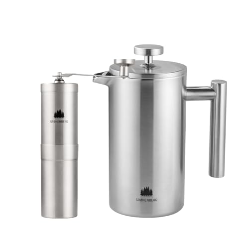 in Manuelle KaffeemühlenGroenenberg Spar Set 5 | French Press Thermo + Kaffeemühle manuell | Edelstahlspülmaschinenfest, einfach zu säubern