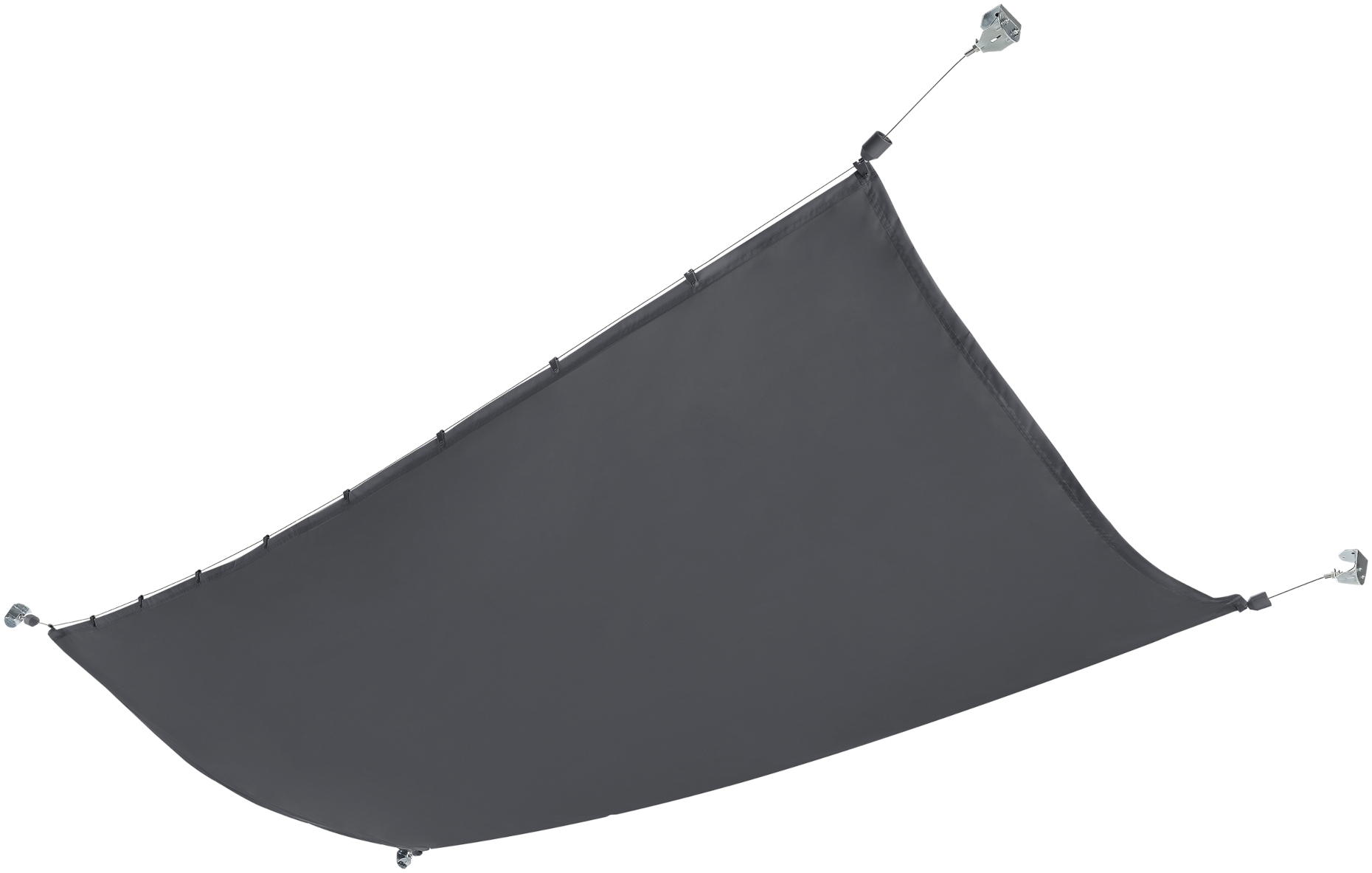 | Lieferumfang | 1x Sonnensegel, 1x Drahtseil, 4x Kabelspanner, 4x Montagewinkel, 4x Abdeckhauben, 30x Haken, 1x Montagezubehör (Schrauben, Muttern, Werkzeug,...) |