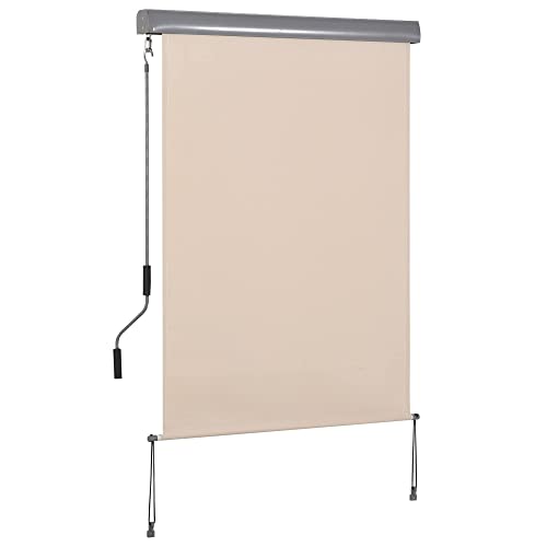 Outsunny Senkrechtmarkise Balkonmarkise Vertikalmarkise Windschutz Seitenrollo Sichtschutz mit Handkurbel Polyesterstoff+Aluminium Cremeweiß 100 x 140 cm