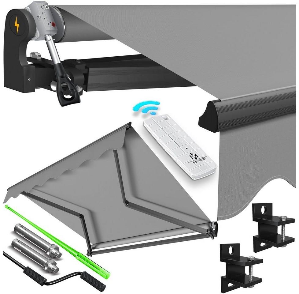 in MarkisenKESSER® Elektrische Gelenkarmmarkise mit Fernbedienung Markise Gelenkmarkise Terrassenmarkise Klemmmarkise Sonnenmarkise inkl. Wandhalterung Sonnenschutz Balkonmarkise wasserabweisender Grau 250 x 200 cm