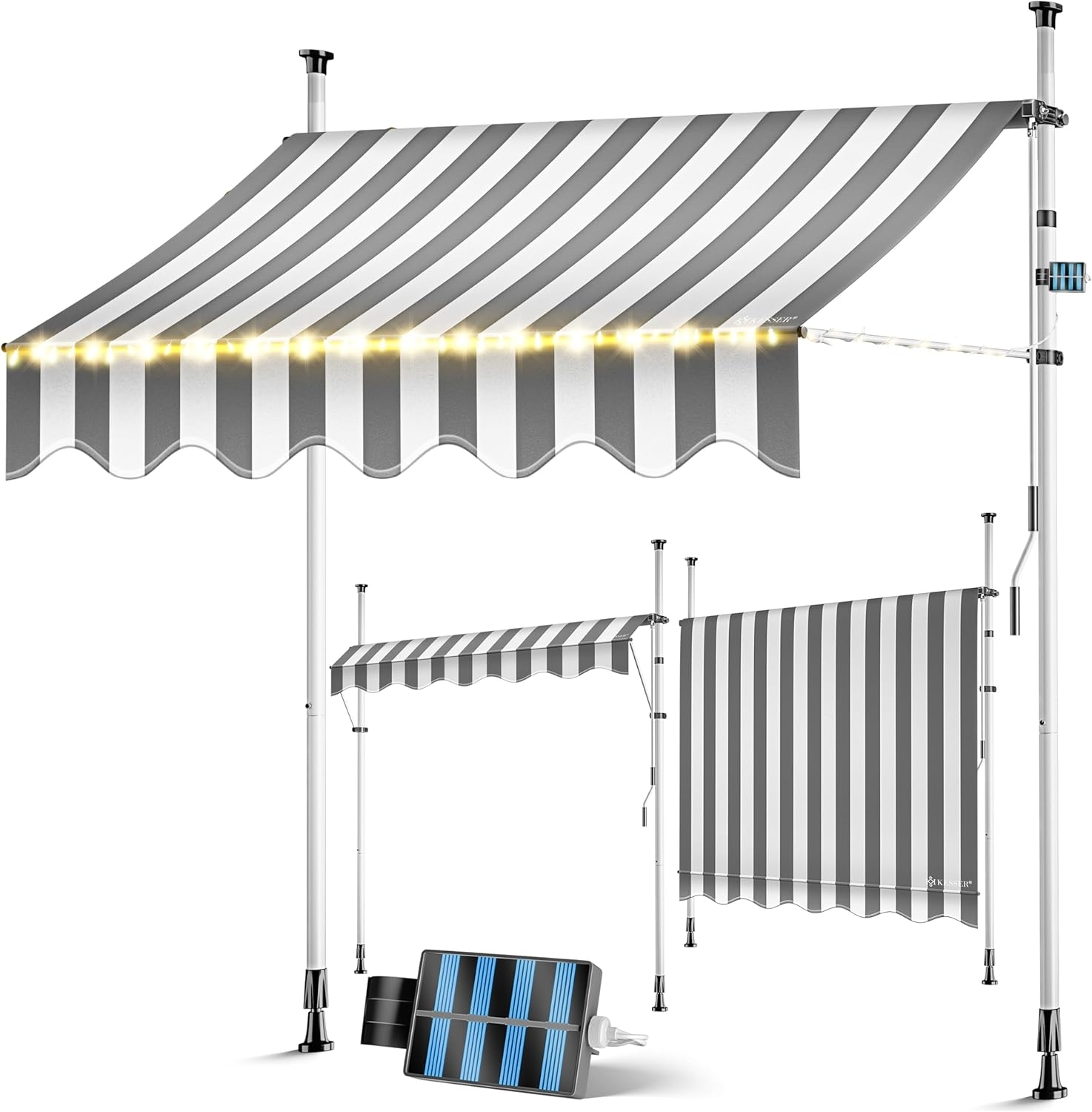 | Name | KESSER® Klemmmarkise mit Handkurbel & LED Lichterkette | Balkonmarkise ohne Bohren | Markise UV-beständig höhenverstellbar & wasserabweisend | Sonnenschutz für Balkon Terrasse & Garten Weiß / Grau, 200cm |
