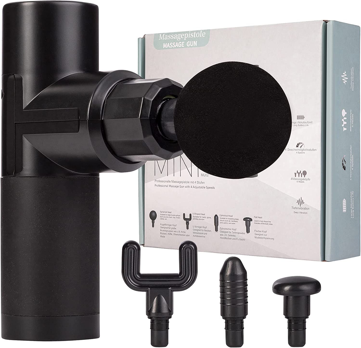 ONVAYA Massagepistole Mini Massagegerät für NackenRücken, Schulter und mehr Elektrisches Handmassagegerät Massage Gun 4 Geschwindigkeitsstufen 4 Massageaufsätze