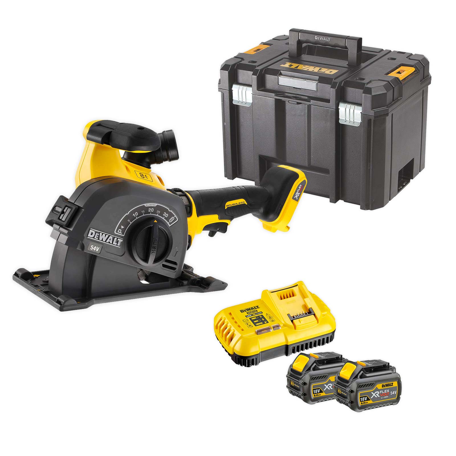 DeWALT Akku-Mauernutfräse DCG200T2-QW 54 V 6 Ah - bürstenlos Schlitzfräse Mauerfräse Fräse inkl. AkkusLadegerät und Zubehör-Set
