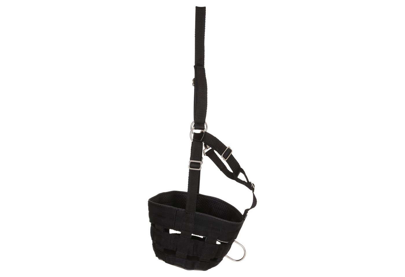 - Der Maulkorb verfügt über eine Fressbremse, die es den Pferden ermöglicht, langsamer zu fressen, was die Futterverwertung verbessert.