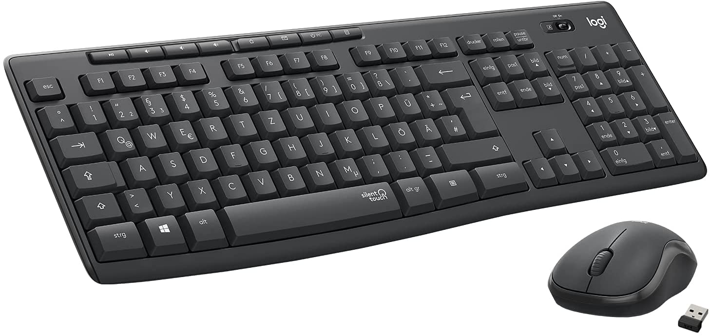 - Das Logitech MK295 Tastatur-Maus-Set bietet eine kabellose Verbindung für flexibles Arbeiten ohne Kabelsalat.