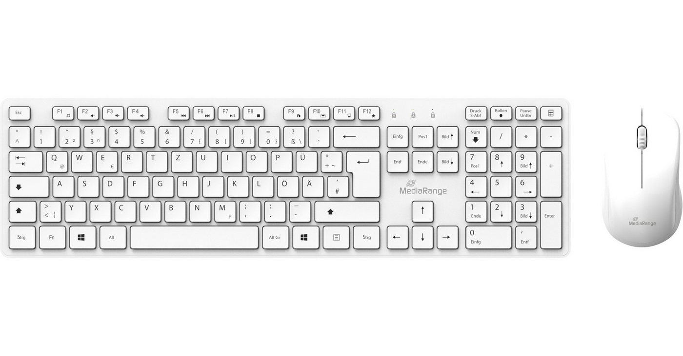 in Maus & Tastatur SetsMediarange MROS278Kabelloses Tastatur- und Maus-Set in Weiß, 3 Tasten Funk-Maus mit 1200 dpi und QWERTZ Layout