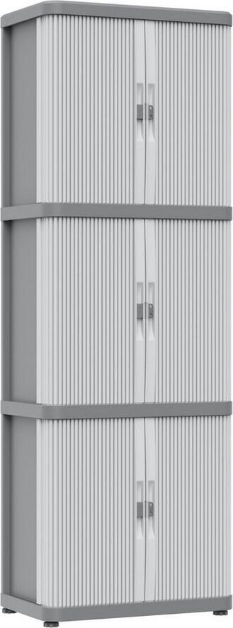 Kreher Rolladenschrank "Rolling Space" vereint moderne Optik mit praktischem Stauraum. Aus UV- und witterungsbeständigem Kunststoff gefertigt, ist er ideal für feuchte Räume oder den Outdoor-Bereich. Die leichtgängigen Schiebetüren und modularen Einlegeböden bieten Ihnen Flexibilität und einfachen Zugang. Mit einer maximalen Belastung von 10 kg pro Boden ist dieser Schrank perfekt für Haushalt, Werkstatt oder Garten geeignet. **Highlights** - Leichtgängige Schiebetüren für einfachen Zugang - Modular einstellbare Einlegeböden mit max. Belastung von 10 kg pro Boden - Abschließbar für zusätzlichen Schutz - UV-beständig und wasserdicht (IP43) - Einfache Montage durch simples Stecksystem **Produkteigenschaften** - Maße Wandschrank: 59 x 36 x 59,5 cm (Bx Tx H) - Maße XXL Universalschrank 6 Böden: 59 x 36 x 170 cm (Bx Tx H) - Aus UV- und witterungsbeständigem Kunststoff - Abwaschbar und leicht zu reinigen - Lieferung mit Schrauben und Winkeln für die Wandmontage **Lieferumfang** - Rolladenschrank - Schrauben und Winkel für die Wandmontage - Modular einstellbare Einlegeböden