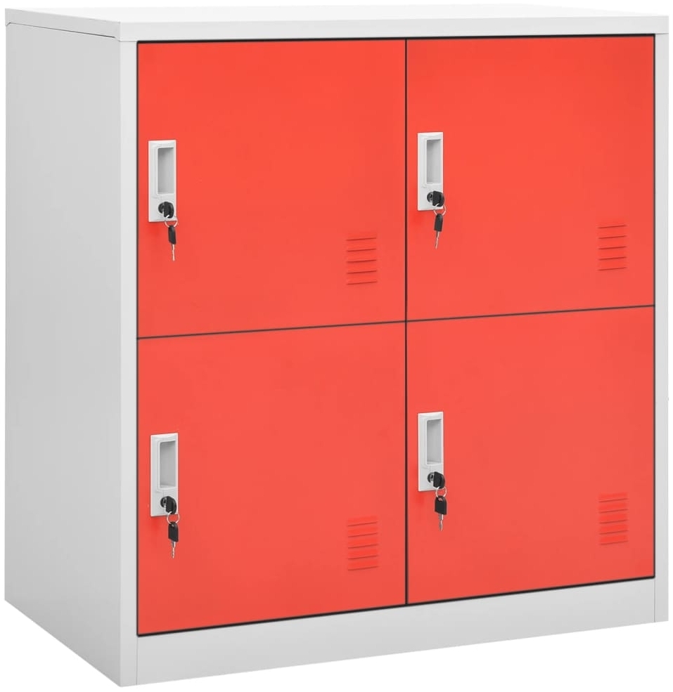 Mit seinem modernen Design ist dieses Schließfachschrank-Set eine stilvolle Ergänzung für jeden Raum oder Bürobereich. Hergestellt aus langlebigem Stahl, bietet es reichlich Stauraum für Schuhe, Taschen, Bücher und Akten. Ausgestattet mit 4 Schließfächern und Schlössern, ist dieser Schrank ideal für Schulen und Büros. Die Abmessungen betragen 90 x 45 x 92,5 cm (B x T x H) und die Belastbarkeit pro Fachboden liegt bei 15 kg, insgesamt 60 kg. Der Zusammenbau ist erforderlich. **Highlights** - Modernes Design für jeden Raum oder Bürobereich - Langlebiges und leicht zu reinigendes Stahlmaterial - 4 Schließfächer mit Schlössern für sichere Aufbewahrung - Großer Stauraum für Schuhe, Taschen, Bücher, Akten usw. - Ideal für Schulen und Büros **Produkteigenschaften** - Farbe: Hellgrau und Rot - Material: Stahl - Maße: 90 x 45 x 92,5 cm (B x T x H) - Belastbarkeit pro Fachboden: 15 kg - Gesamte Belastbarkeit: 60 kg - Zusammenbau erforderlich: Ja **Lieferumfang** - 2 x Schließfachschrank - Wandhalterung zur Sicherung gegen Umkippen