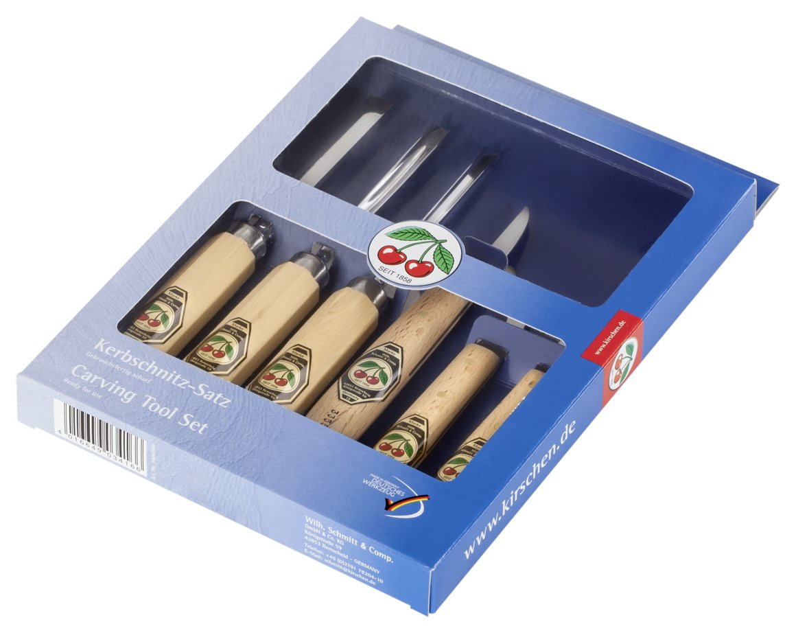 in Meißel-SetsKirschen Kerbschnitzsatz 6-teilig (Schnitzsatz, handgeschmiedet, Spezialstahl, Schneidenwinkel: 17°) 3406000