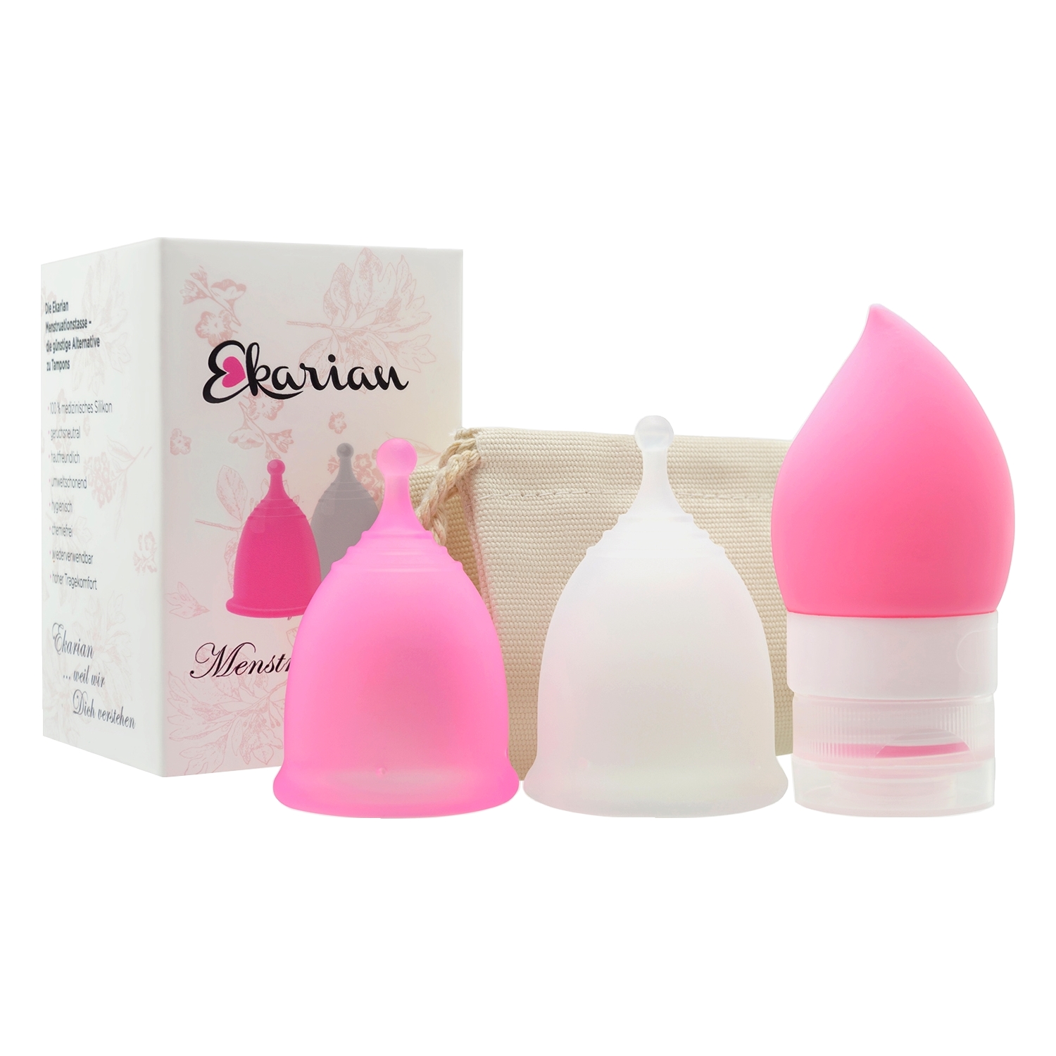 in MenstruationstassenEkarian Menstruationstassen-Set aus 2 Menstrautionstassen Größe S und LWaschflasche, Aufbewahrungsbeutel