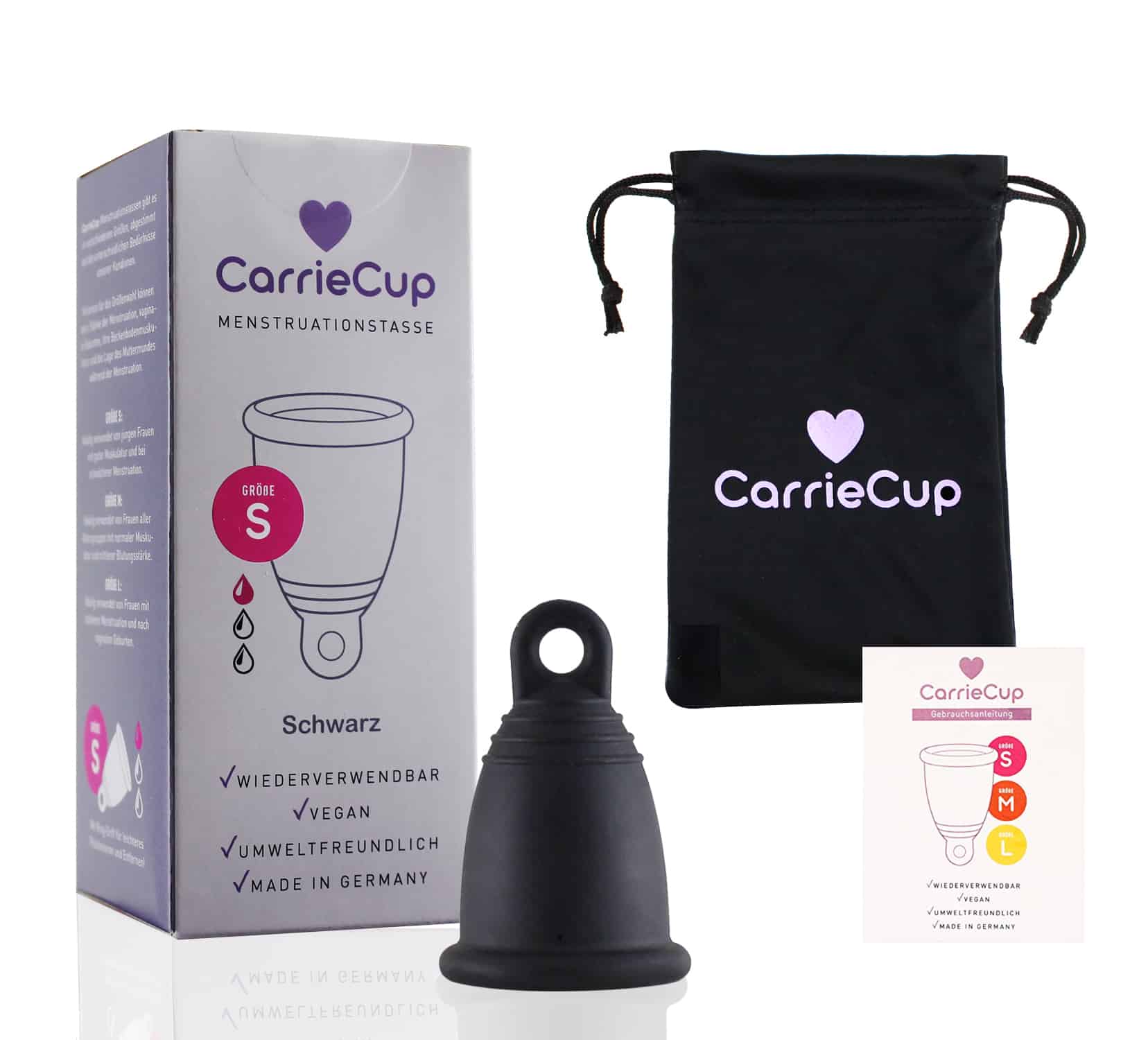 CarrieCup Menstruationstasse S schwarz BPA-freilatexfrei, medizinkonformes TPE, geeignet für leichte Periode 1 Stück