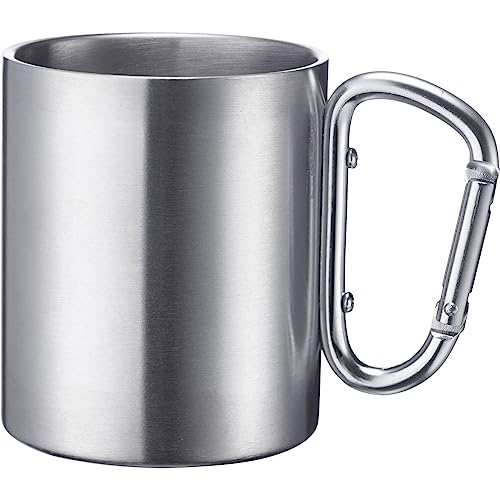 in MessbecherWestmark Edelstahltasse mit Karabinerhaken – praktische Camping-Tasse Outdoorideal für heiße und kalte Getränke, Becher mit Karabiner zum Befestigen – 300 ml, Edelstahl, rostfrei