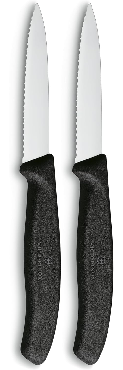 Victorinox Swiss Classic Profi Gemüsemesser mit extra scharfer Klinge und Wellenschliff ist ideal zum Schneiden von Gemüse, Obst und anderen Lebensmitteln. Der ergonomische, robuste Kunststoffgriff sorgt für eine angenehme Handhabung. Die Klinge aus rostfreiem Stahl bietet Präzision und Stabilität. Mit einer Länge von 189 mm, einer Breite von 20 mm und einer Höhe von 11 mm ist dieses leichte Gemüsemesser ein unverzichtbares Werkzeug in jeder Küche. **Highlights** - Extra scharfe Klinge für präzises Schneiden - Ergonomischer Griff für einfache Handhabung - Klinge aus rostfreiem Stahl für Langlebigkeit - Leicht zu reinigen und sterilisiert für maximale Sauberkeit - Hohe Qualität und Tradition von Victorinox **Produkteigenschaften** - Maße (LxBxH): 189 mm x 20 mm x 11 mm - Gewicht: 20 g - Material: Polypropylen (PP) - Farbe: Schwarz - Artikelnummer: 6.7633.B **Lieferumfang** - 1x Victorinox Swiss Classic Profi Gemüsemesser - Ausschluss von weiteren Messern oder Zubehör