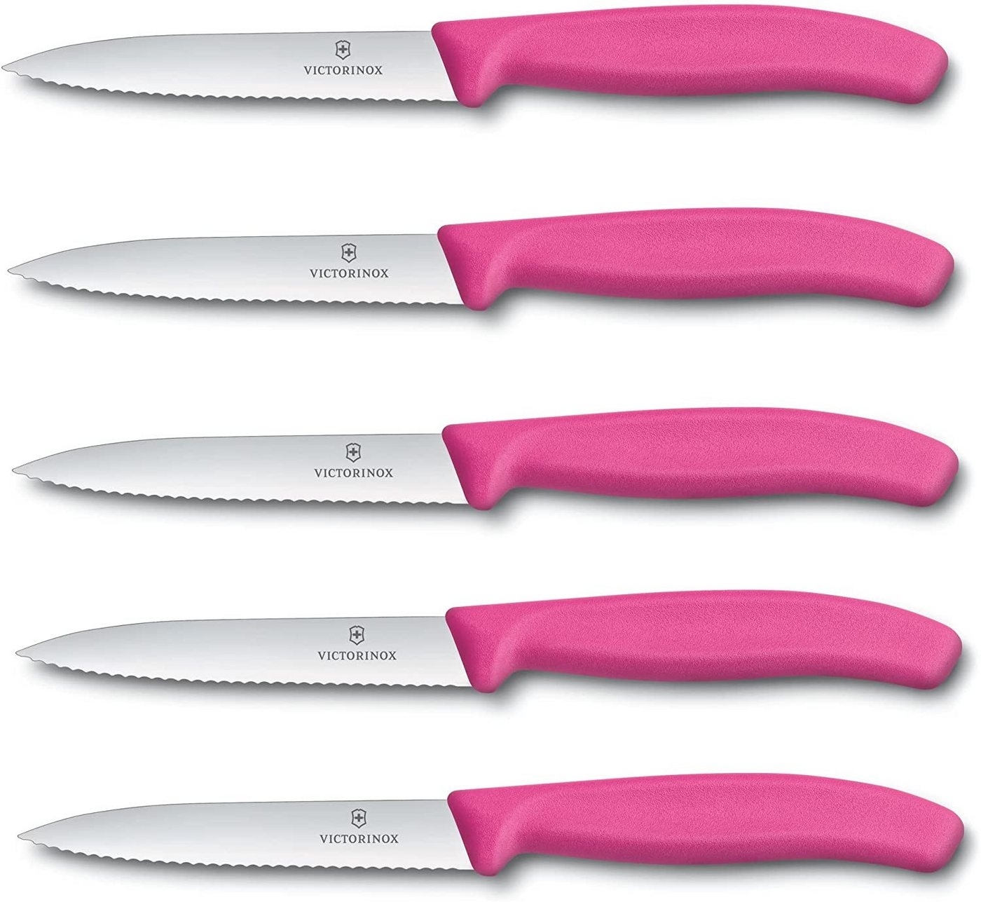 in Messer-SetsVictorinox | Gemüsemesser Set | 10 cm Wellenschliff | Swiss Classic | ideal zum Schneiden von Tomaten | 5-teilig | farblich in Pink gestaltet
