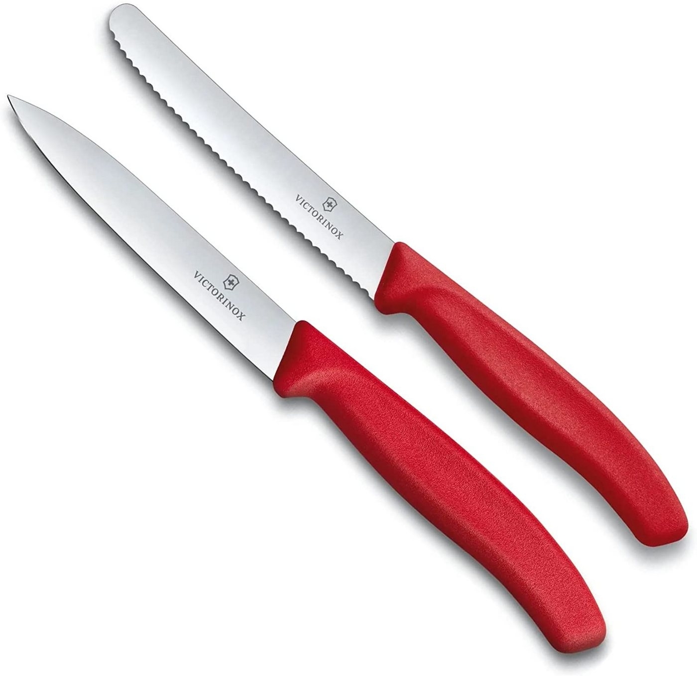 Victorinox | Swiss Classic Gemüsemesser 2er Set | perfekt für Tomaten & Gemüse | robuste Klingen | leuchtendes Rot | ideal für präzises Schneiden in der Küche