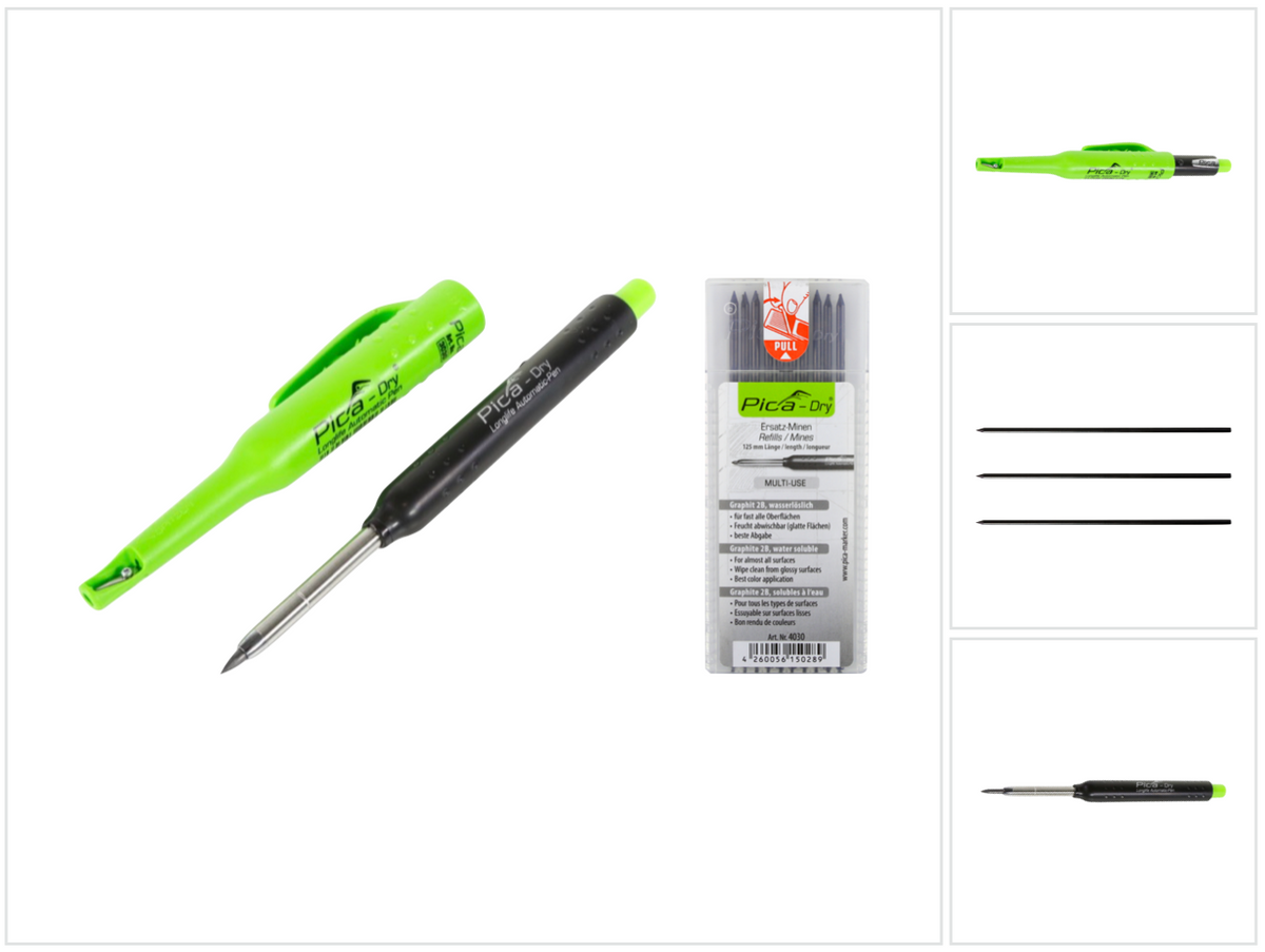 in MesswerkzeugPica DRY Longlife Automatic Pen Baumarker Tieflochmarker mit Graphitmine + 1 x 10 tlg. wasserlösliches Graphit Ersatzminen-Set