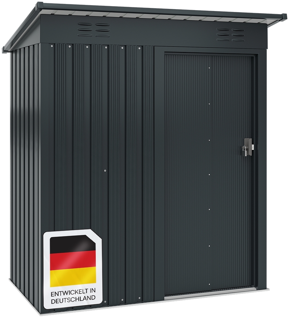 | Name | STEELSØN 'Talonix' Gerätehaus Pultdach mit Schiebetür, Stahl, anthrazit, wetterfest, 164x96x184/160 cm, abschließbar |