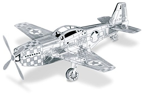 - Der Metal Earth Mustang P-51 ist ein 3D-Metall-Bausatz, der aus lasergeschnittenen Bauteilen besteht, die einfach aus der Metallkarte herausgedrückt werden können.