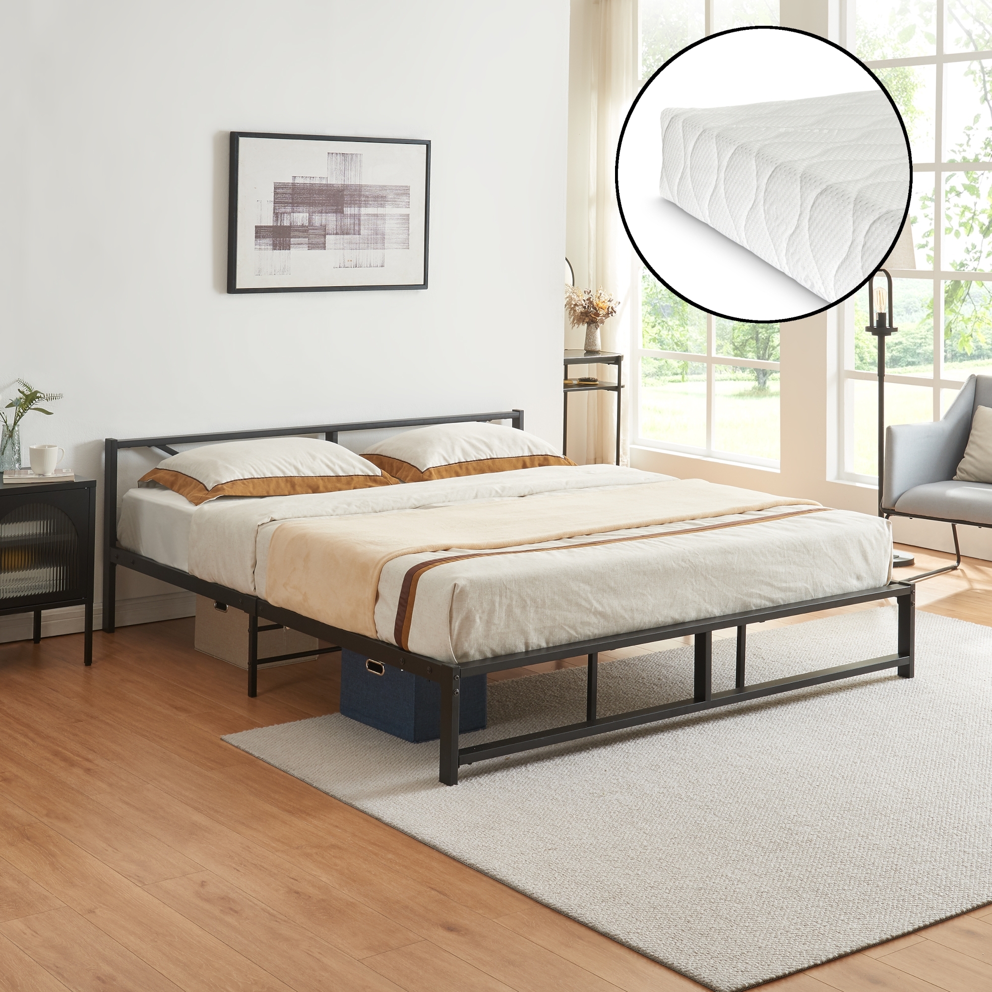 | Lieferumfang | 1x Metallbett, 1x Lattenrost, 1x Matratze |