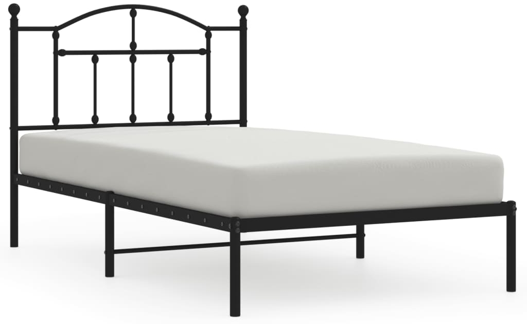 Das vidaXL Bettgestell mit Kopfteil aus pulverbeschichtetem Stahl in Schwarz vereint Robustheit und zeitloses Design. Mit Gesamtabmessungen von 196 x 105 x 97 cm (L x B x H) und einer passenden Matratzengröße von 100 x 190 cm (B x L) bietet es optimalen Komfort. Das Metallgestell sorgt für Stabilität, während der Lattenrost und die Mittelfüße die Matratze unterstützen und belüften. Der zusätzliche Stauraum unter dem Bett sorgt für Ordnung im Schlafzimmer. **Highlights** - Robustes Metallgestell - Lattenrost und Mittelfüße aus Metall - Zusätzlicher Stauraum unter dem Bett - Hervorragende Rückenunterstützung durch das Kopfteil **Produkteigenschaften** - Farbe: Schwarz - Material: Stahl - Gesamtabmessungen: 196 x 105 x 97 cm (L x B x H) - Höhe unter dem Bett: 27 cm - Passende Matratzengröße: 100 x 190 cm (B x L) - Zusammenbau erforderlich: Ja **Lieferumfang** - Bettgestell mit Kopfteil aus Metall in Schwarz (Matratze nicht enthalten)