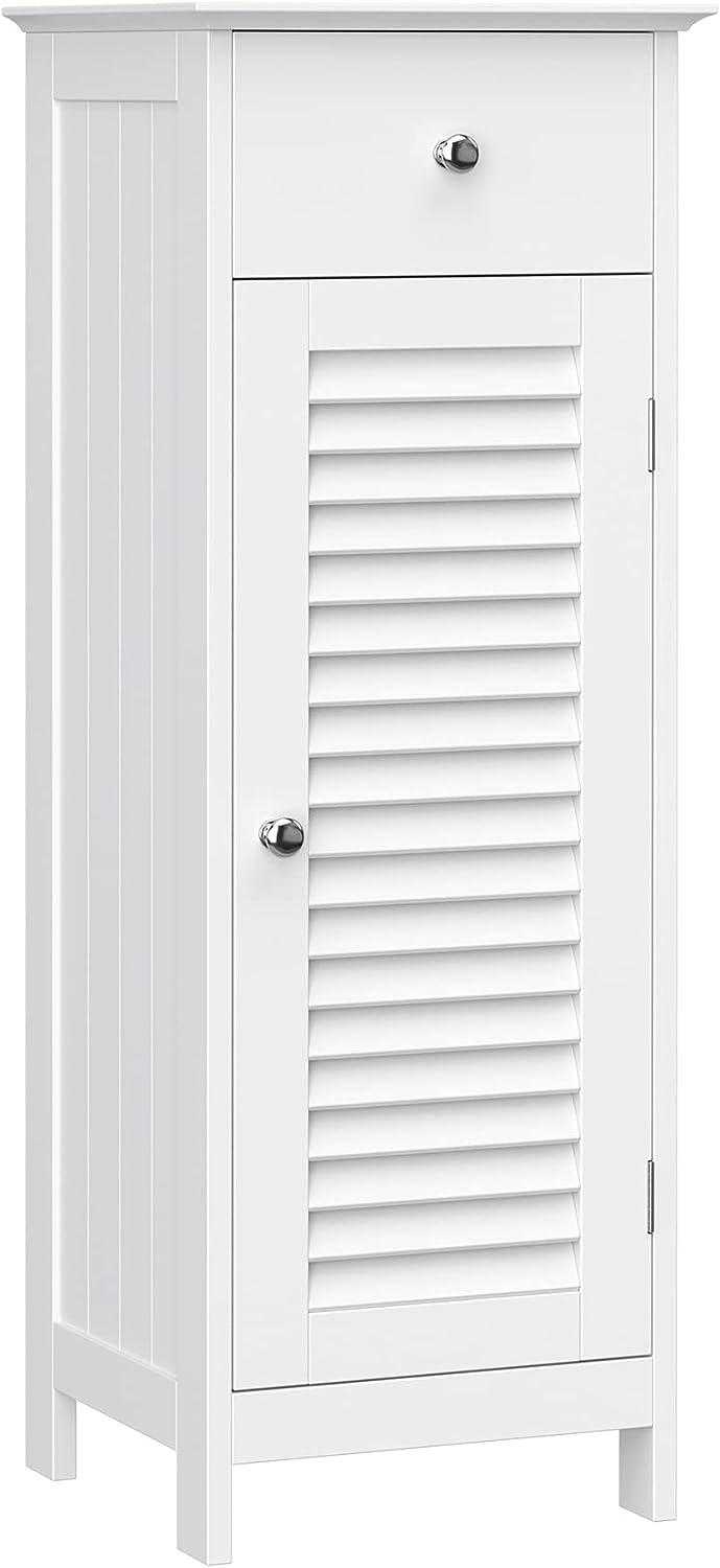 Vasagle Badschrank mit Schublade und LamellentürMDF, 30 x 32 x 87 cm, Weiß