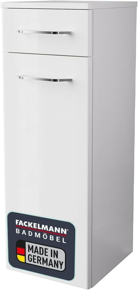 Der Fackelmann MILANO Midischrank 30 cm in Weiß fügt sich mit seinem schlichten Design harmonisch in jedes Badezimmer ein. Der Schrank bietet viel Stauraum für Badaccessoires mit einer Schublade und einer Tür. Die Tür lässt sich dank der gedämpften Scharniere sanft schließen und die Schublade verfügt über ein modernes Soft-Close-System. Der Midischrank wird zerlegt geliefert und enthält eine leicht verständliche Aufbauanleitung. **Highlights** - Schlichtes Design für eine harmonische Einbindung in jedes Badezimmer - Viel Stauraum mit einer Schublade und einer Tür - Gedämpfte Scharniere für sanftes Schließen der Tür - Modernes Soft-Close-System für die Schublade - Made in Germany - Produktion in Hersbruck bei Nürnberg **Produkteigenschaften** - Maße: 30,5 cm Breite, 83 cm Höhe, 32 cm Tiefe - Ausstattung: 1 Tür, 1 Schublade, 2 Glaseinlegeböden - Besonderheit: Querteile und Rückwand silbergrau, frei wählbarer Türanschlag - Montageart: zerlegt - Farbe/Design: Korpus Weiß matt, Front Weiß Hochglanz **Lieferumfang** - Zerlegter Fackelmann MILANO Midischrank 30 cm, Weiß - Leicht verständliche Aufbauanleitung