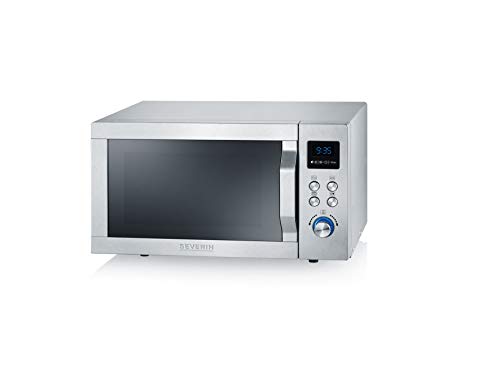 in MikrowellenSeverin MW 7751 2-in-1 Mikrowelle mit GrillStandgerät, 800 Watt, Inklusive Grillrost und Drehteller, Durchmesser 24,5cm, Be-Silent-Funktion edelstahl-schwarz
