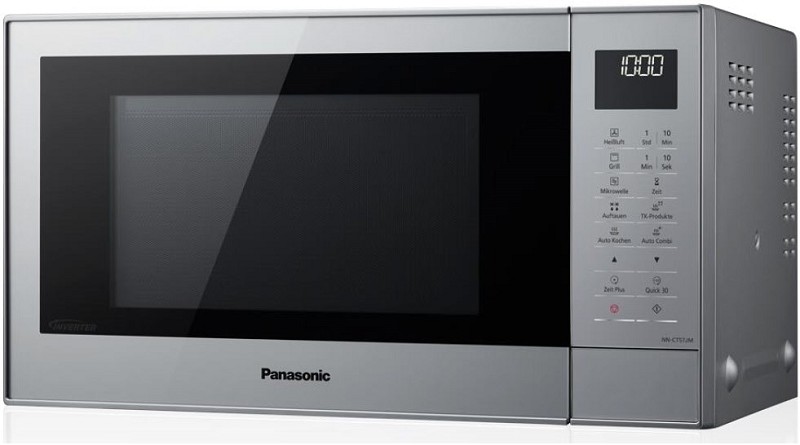 - Die Panasonic NN-CT57 ist eine platzsparende Heißluft-Kombi-Mikrowelle mit einem großen Garraum von 27 Litern und einem 34 cm großen Drehteller.
