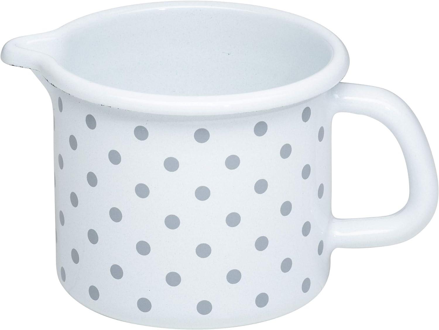 Der Riess Pünktchen Grau Schnabeltopf vereint ländliches Flair mit Funktionalität. Mit seinem charakteristisch geformten Ausguss ermöglicht er präzises Eingießen von Flüssigkeiten wie Milch, Wasser oder Saucen. Der bequeme Rundgriff sorgt für einfaches Servieren am Tisch. Der stabile Bördelrand garantiert Langlebigkeit. Er ist in drei Größen erhältlich, sodass Sie die passende Variante für Ihre Bedürfnisse wählen können. **Highlights** - Charakteristisch geformter Ausguss für präzises Eingießen - Bequemer Rundgriff für einfaches Servieren - Stabiler Bördelrand für Langlebigkeit - Erhältlich in drei verschiedenen Größen - Klassisches Design für vielseitigen Einsatz **Produkteigenschaften** - Farbe: Pünktchen Grau - Material: Emaille - Größen: Ø 9 cm H 8,5 cm (0,5 Liter), Ø 10 cm H 10 cm (0,75 Liter), Ø 12 cm H 11,5 cm (1 Liter) - Für alle Herdarten geeignet: Gas, Elektro, Glaskeramik, Induktion, offenes Feuer - Schnitt- und kratzfest, bakterienhemmend und aromaneutral - Leicht zu reinigen
