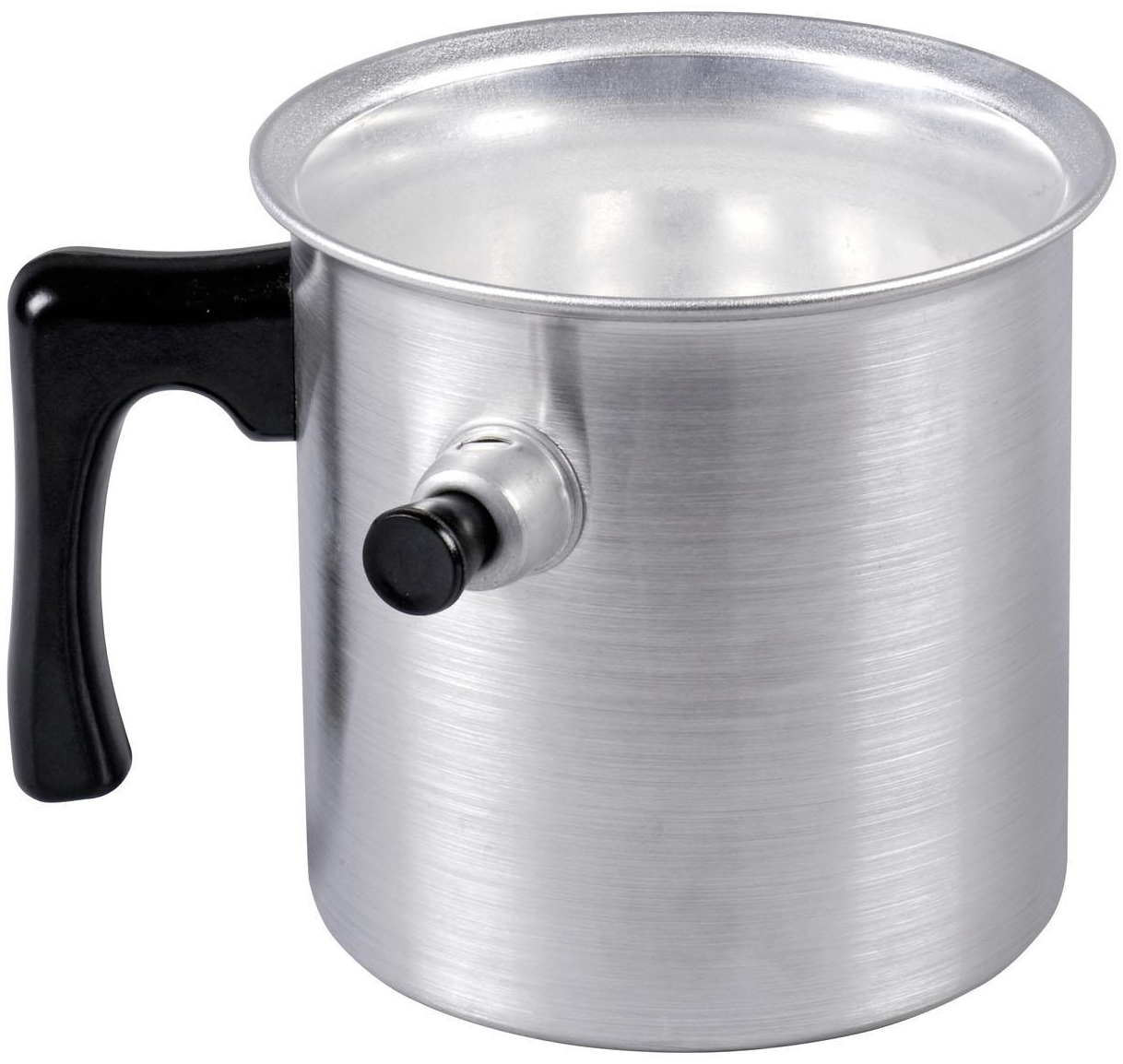 - Der Wasserbadkocher besteht aus geschliffenem Aluminium, was ihm eine ansprechende Optik verleiht