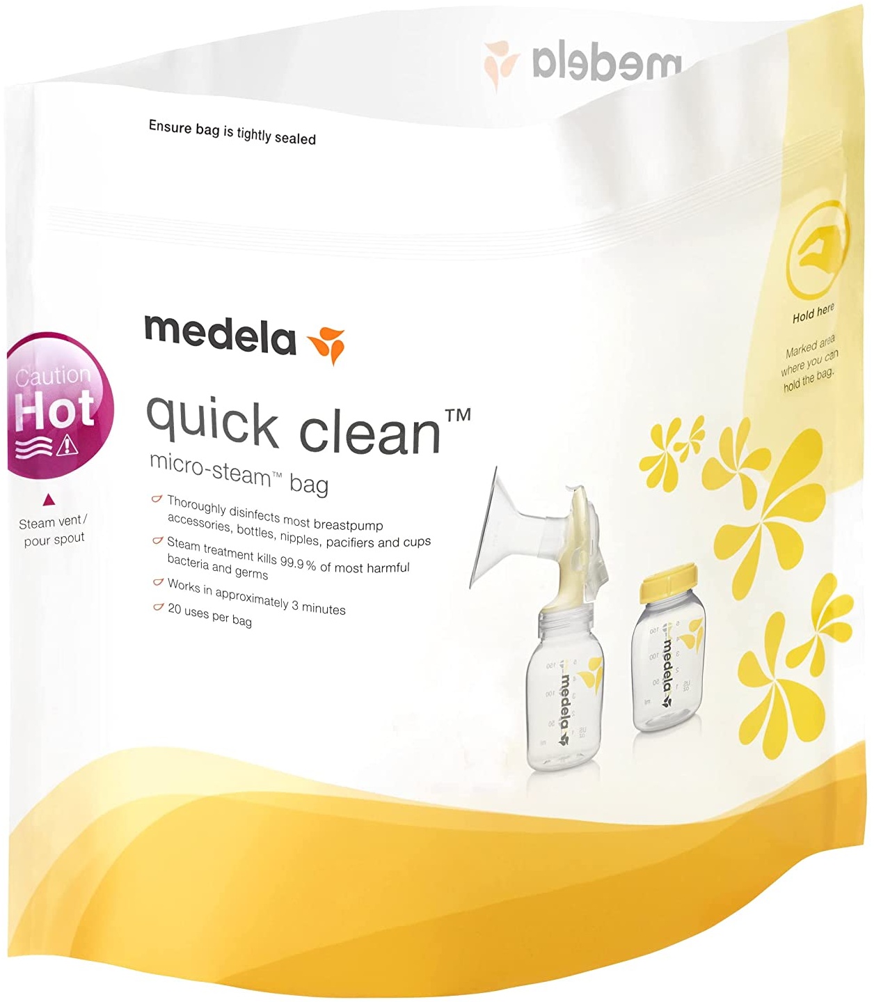 - Mit den Medela Quick Clean Mikrowellenbeuteln können Sie Ihr Still- und Fütterungszubehör sicher und schnell reinigen und sterilisieren.
