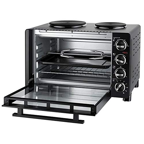 in MinibacköfenUNOLD 68885 KLEINKÜCHE All in One600-1.500 W, 30 L Volumen, Back-Grill-und Drehspießofen mit 2 Kochplatten, Metall, Schwarz