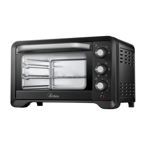 Ardes Elektrischer Umluft-Kleinbackofen 22 Liter Fassungsvermögen mit Innenbeleuchtung 6 Garfunktionen Timer Doppelverglasung MAGNUS AR6222PBSchwarz