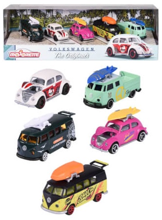 - Das VW The Originals 5 Pieces Pack enthält fünf detailgetreu gefertigte VW-Modellautos im Maßstab 1:64, die jeweils ca. 7,5 cm lang sind.
