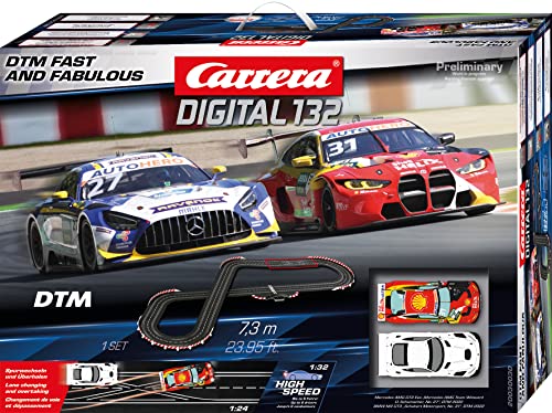Carrera DIGITAL 132 - Rennsport Set mit Mercedes AMG GT3 EVO & BMW M4 GT3 - Authentisches DTM Rennvergnügen - Maßstab 1:32