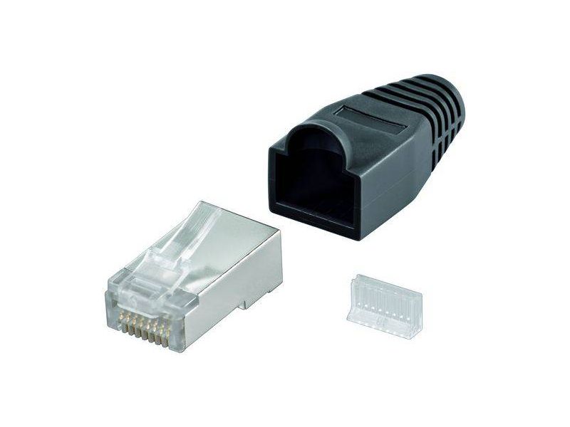 Modularstecker RJ45 geschirmtmit Knickschutz, Schwarz
