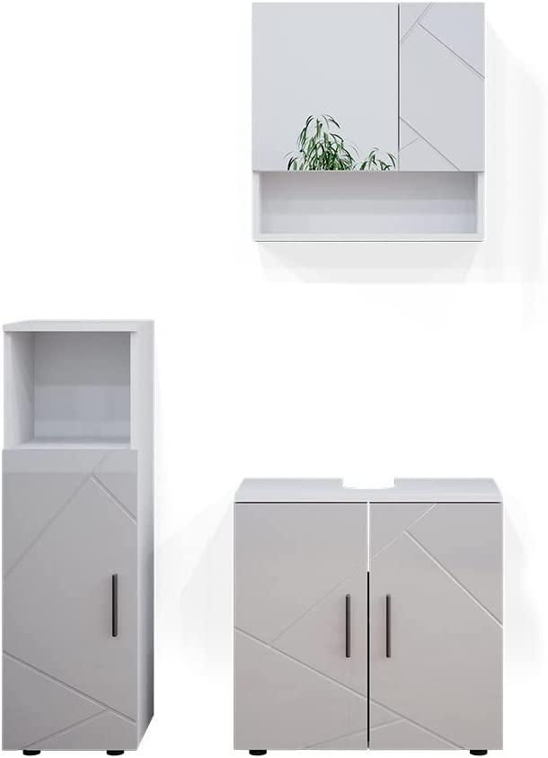 Vicco Badmöbel Set Badezimmermöbel Badezimmerschränke Irma (Weiß Hochglanz, Badmöbelset Irma 5)