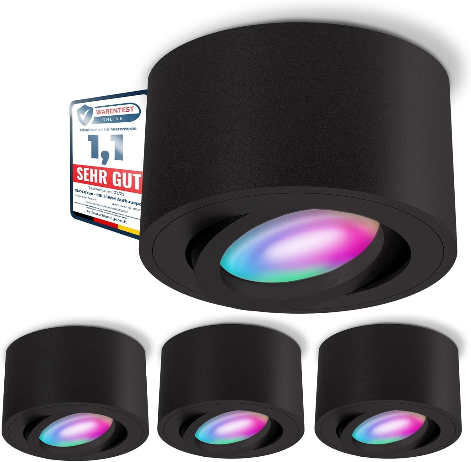 SSC-LUXon LED Aufbaustrahler CELI-1BM Aufbauspot schwarz flach schwenkbar mit LED RGB WiFiWarmweiß bis Tageslicht