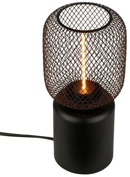 Elegante Tischleuchte RIST 7583015 in Schwarz mit einem faszinierenden Drahtgeflecht-Lampenschirm, der beeindruckende Lichtspiele erzeugt. Ausgestattet mit einem E27 Filament-Leuchtmittel, bietet sie super warmweißes Licht und ist ideal für Wohnräume oder Schlafzimmer. Der Kabelschalter ermöglicht eine einfache Bedienung. Mit kompakten Maßen von Ø 100x250 mm (D x H) passt sie perfekt in kleinere Räume und setzt stilvolle Akzente. **Highlights** - Drahtgeflecht-Lampenschirm für faszinierende Lichtspiele - E27 Filament-Leuchtmittel inklusive für super warmweißes Licht - Kabelschalter für bequeme Bedienung - Kompaktes Design für platzsparenden Einsatz - Robustes Metall in Schwarz für Langlebigkeit und industriellen Look **Produkteigenschaften** - Maße (D x H): Ø 100x250 mm - Material: Metall - Kabellänge: 1,8 m **Lieferumfang** - 1 x Tischleuchte RIST 7583015 - E27 Filament-Leuchtmittel inklusive - Ohne zusätzliche Leuchtmittel