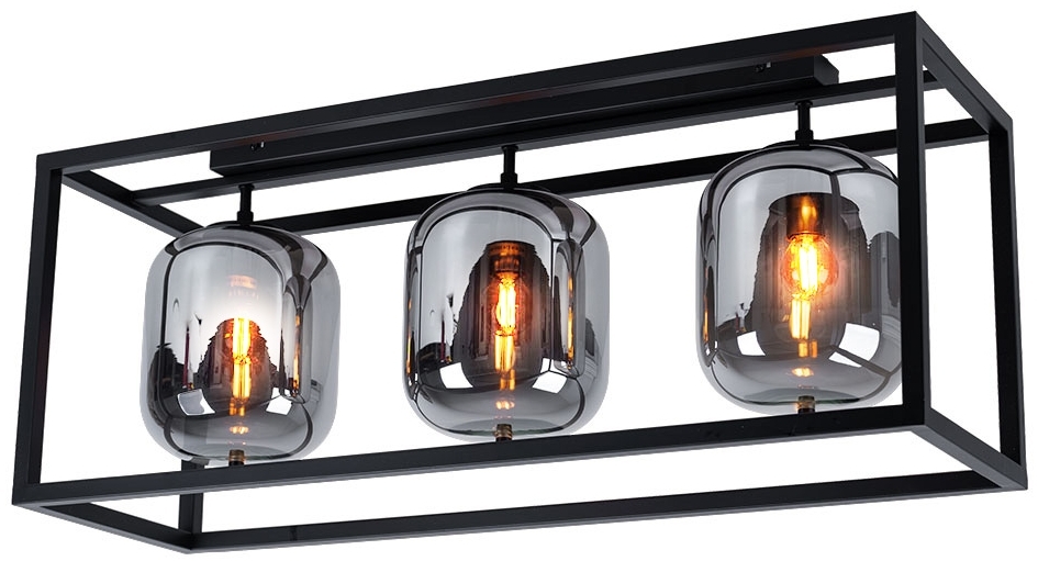 LED Deckenleuchteschwarz, Glas rauch, L 77 cm