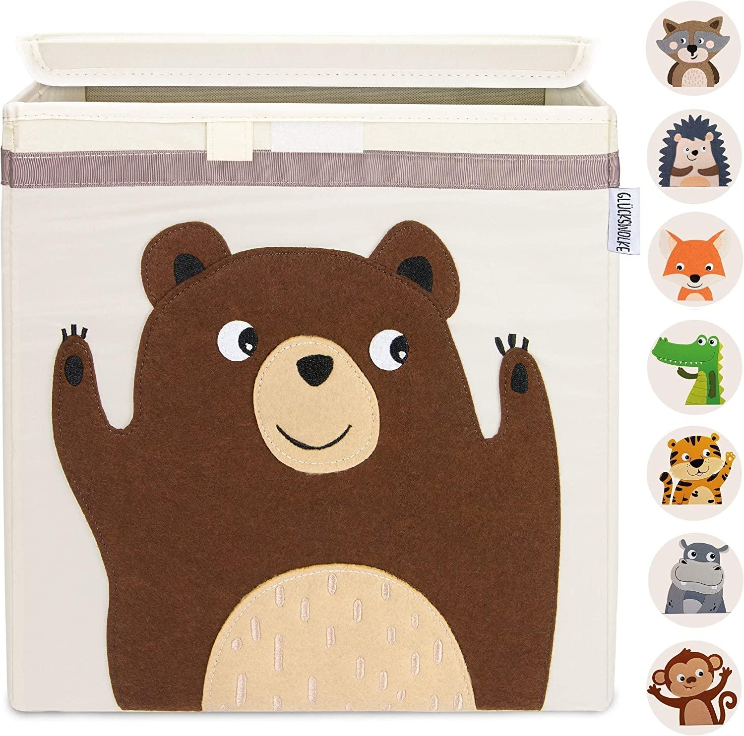 ORNDUNG IM KINDERZIMMER - Dank unserer Aufbewahrungsboxen kannst du jetzt Spielsachen und Kleidung praktisch verstauen. So herrscht im Kinderzimmer endlich kein Chaos mehr und die Spielbox sieht dazu auch noch wunderschön aus. ZUSÄTZLICHE FEATURES - Im Gegensatz zu anderen Boxen haben wir nicht am Material gespart. Unsere Spielzeugkiste verfügt über extra verstärkte Kartonwände inklusive 2 praktischer Griffe und einem verschließbarem Deckel. Diese Box hat alles was sie braucht! WALDTIERE DESIGN - Unsere Truhe verfügt über ein hochwertiges Filz Motiv. Der süße Fuchs wird dein Kind sofort begeistern. Ob als Aufräumhelfer oder als Deko, ihr werdet viel Freude an dieser Spielzeugtruhe haben. KINDERFREUNDLICHES MATERIAL - Die Spielzeugbox überzeugt durch eine hervorragende Qualität. Wir haben darauf geachtet das nur kindergerechte Materialien verwendet werden. So ist unser Aufbewahrungskorb frei von Phthalat oder anderen Gefahrenstoffen. PERFEKTE GRÖSSE - In der quadratischen Würfelbox ist genug Stauraum für jede Menge Sachen. Das Beste daran, der Korb passt perfekt in die gängigen Würfelregale (33 x 33 x 33 cm). Du kannst so die Box als Facheinsatz im Kallax Regal von Ikea verwenden.