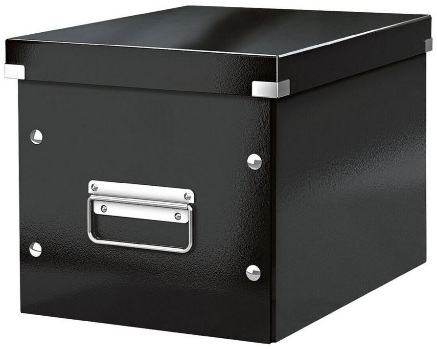 Die LEITZ Aufbewahrungsbox Click&Store bietet mit einem Volumen von 10,0 l und den Abmessungen 26,0 x 26,0 x 24,0 cm eine praktische Lösung zur Aufbewahrung und zum Transport von höheren Gegenständen. Die stabile Box aus Hartpappe ist mit einem Deckel und metallverstärkten Ecken ausgestattet. Dank der Metallgriffe ist der Transport mühelos. Die Hochglanzoptik und die stapelbare Würfelform machen sie ideal für Standard-Bücherregale. **Highlights** - Stabile Box aus Hartpappe für hohe Gegenstände - Deckel mit metallverstärkten Ecken für zusätzliche Stabilität - Leichter Transport durch Metallgriffe - Patentierte Konstruktion schützt vor unbeabsichtigtem Öffnen - Einfache Reinigung und schneller Aufbau durch Druckknöpfe **Produkteigenschaften** - Maße (HxBxT): 26,0 x 26,0 x 24,0 cm - Volumen: 10,0 l - Material: Hartpappe mit PP-Laminierung (1400 g/m²) - Hochglanzoptik - Stapelbar und geeignet für Standard-Bücherregale **Lieferumfang** - 1 Stück Aufbewahrungsbox Click&Store - Ausschluss von Zubehör und weiteren Produkten