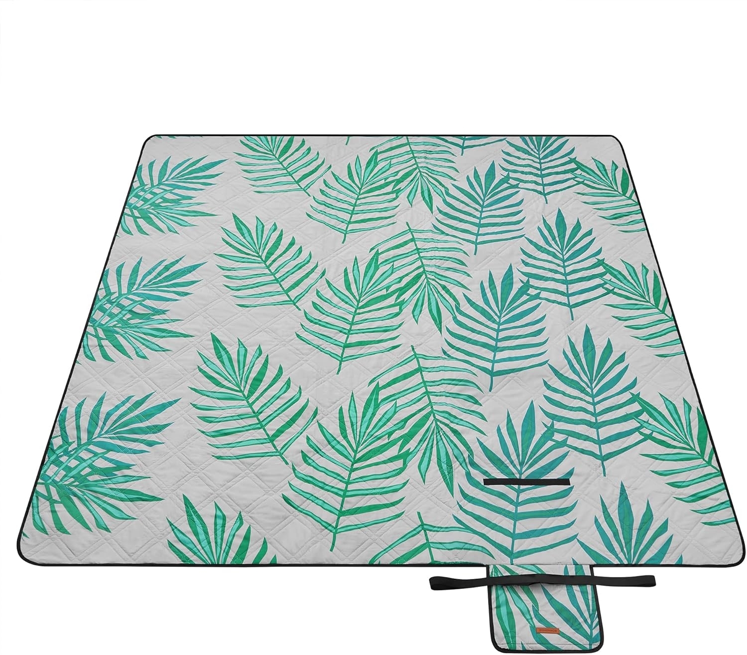 | Name | Songmics Picknickdecke, 200x200 cm, groß, Campingdecke, für Park, Garten, Strand, wasserdicht, maschinenwaschbar, faltbar, grau mit tropischem Farn GCM001G02 |