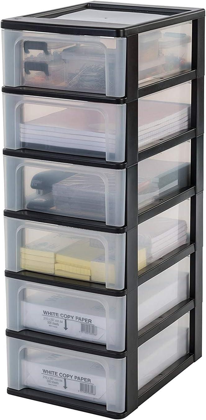 Iris OhyamaSchubladenschrank, Schubladencontainer, 6 Schubladen mit 7 L, Format A4, durchsichtige Schubladen, Büro, Wohnzimmer - Organizer Chest OCH-2006 - Schwarz
