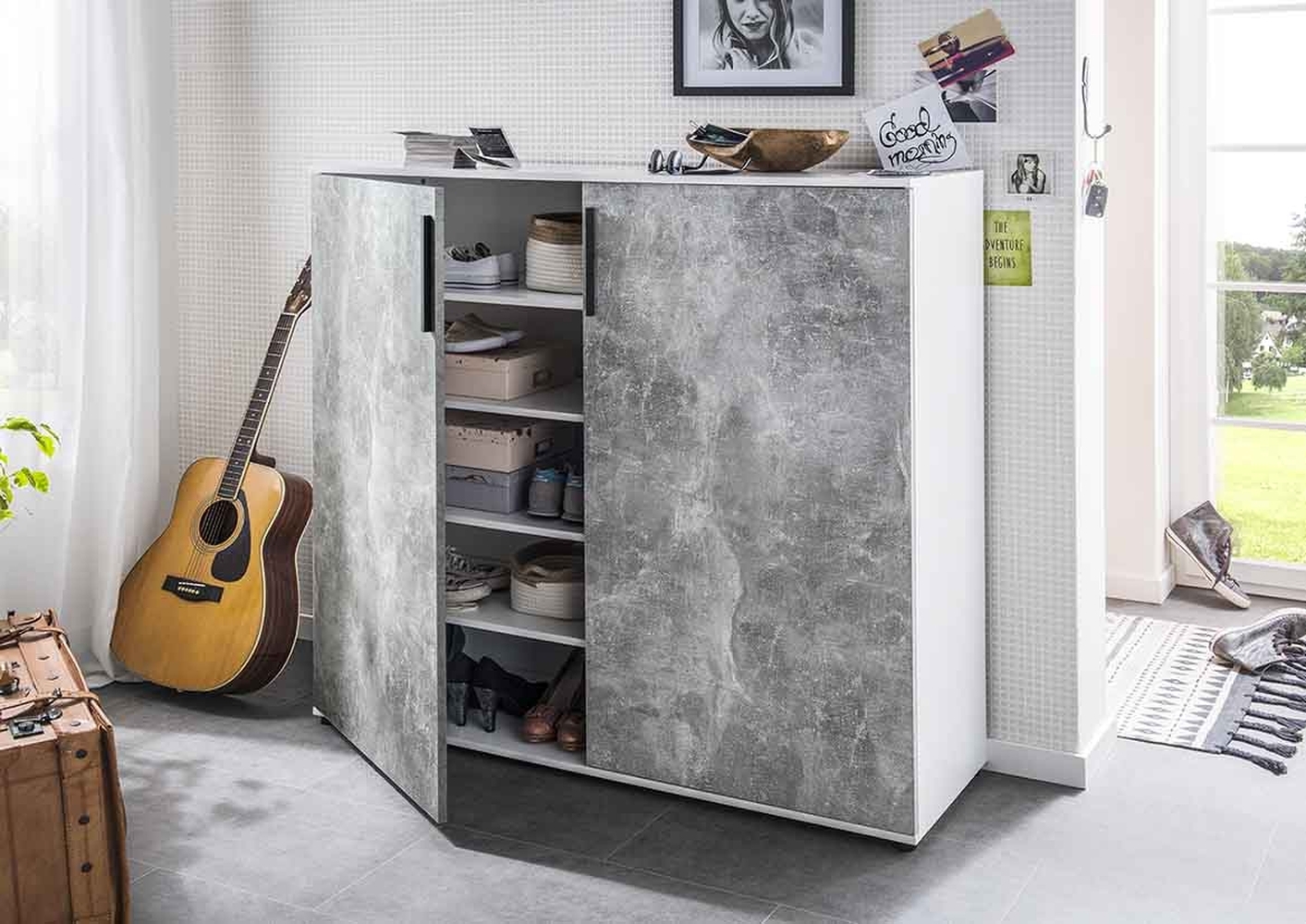 Schuhkommode >8343-11.25< in Weiß/BetonHolzwerkstoff - 120x120x38cm (BxHxT)